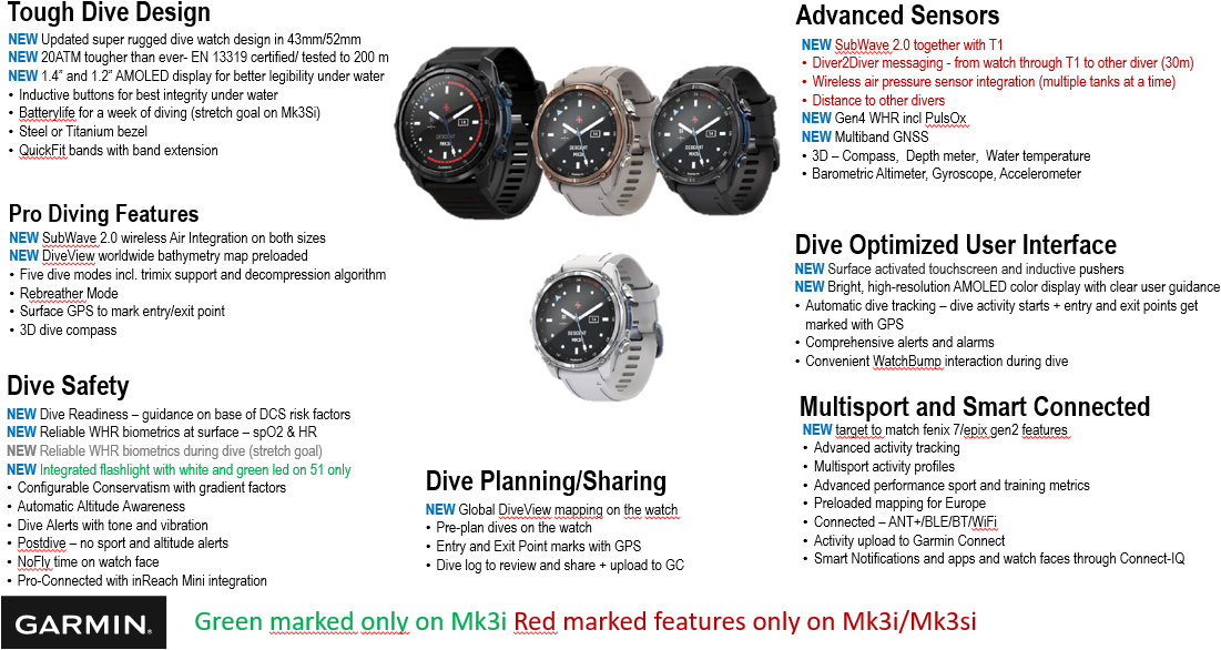 Deze geavanceerde, luchtgeïntegreerde duikcomputer en smartwatch met SubWave™ sonarcommunicatie en duikermonitoring is voorzien van innovaties van Garmin om ervoor te zorgen dat je maximaal kunt genieten van je duikervaring, plus multisporttraining en slimme functies voor je actieve leven buiten het water.